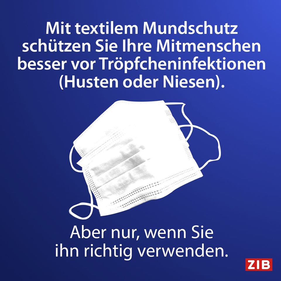 Mundschutz schützt einen nicht selbst vor Corona, sondern vermindert die Ausbreitung durch Tröpfcheninfektion! (ausführlicher erklärt vom ORF).
